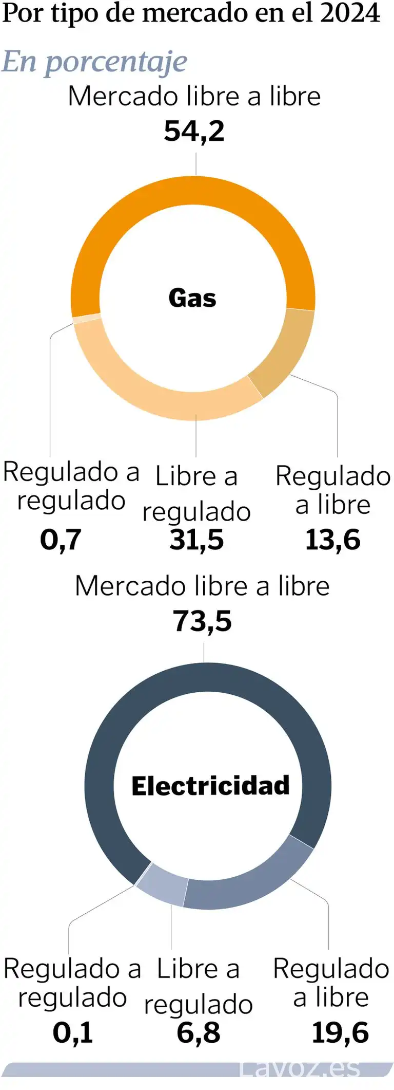 El sector del gas también ha experimentado un incremento significativo, aunque con cifras más moderadas debido a su menor penetración en el mercado. Entre 2019 y 2021, se registraron 90.440 cambios, mientras que entre 2022 y 2024, esta cifra aumentó a 179.594, lo que representa un aumento del 98,5%. La mayoría de los cambios en electricidad (77%) se producen dentro del mercado libre, mientras que en el sector del gas, el 67% de los cambios son de mercado libre a regulado. Estos datos indican que los consumidores están cada vez más informados y dispuestos a tomar decisiones que les beneficien económicamente.