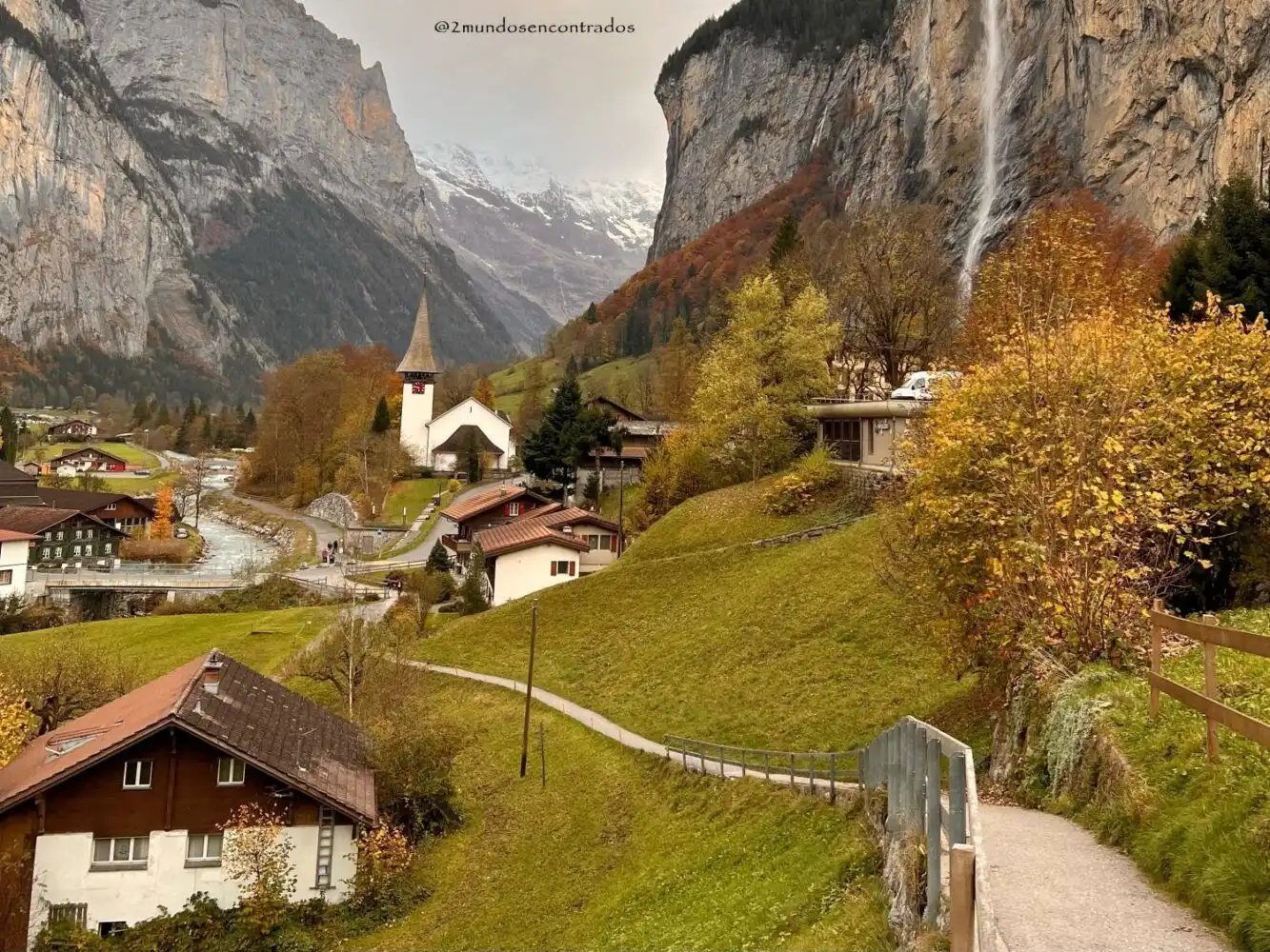 Pocas imágenes se quedan tan grabadas como la llegada a Lauterbrunnen en tren: un valle estrecho y profundo, con prados verdes y paredes verticales de roca por las que caen numerosas cascadas. De hecho, no es casualidad que lo llamen el valle de las 72 cascadas. La más famosa es Staubbachfall, un salto de casi 300 metros que aparece de golpe al terminar las casas de madera del pueblo. Si el día es soleado, el agua forma una cortina brillante que parece flotar en el aire. A un corto paseo están las cascadas de Trümmelbach, un espectáculo donde el agua se abre paso por el interior de la montaña con una fuerza ensordecedora. Se visitan por pasarelas y túneles, y no hay otro lugar parecido en los Alpes.