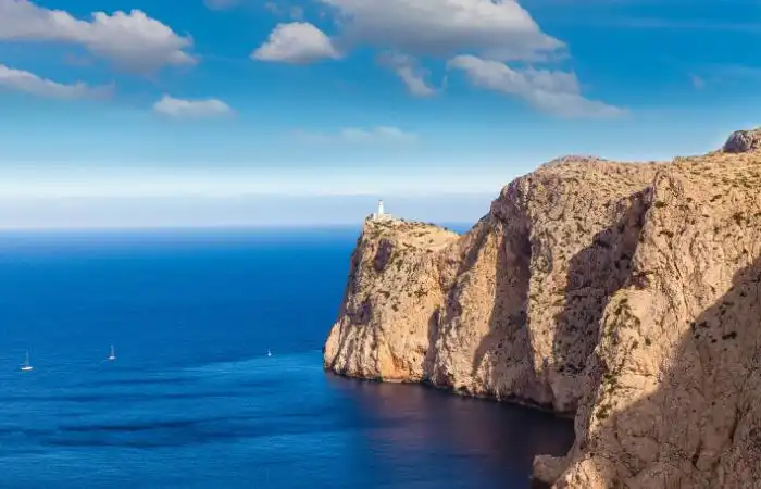 El Cabo de Formentor, en el extremo norte de Mallorca, es conocido por sus acantilados que superan los 300 metros de altura. Este lugar es famoso por sus impresionantes panorámicas del Mediterráneo. El mirador de Es Colomer es uno de los puntos más visitados, pero toda la carretera que lleva al cabo está llena de vistas impresionantes. Formentor es un lugar donde la naturaleza se muestra en su máxima expresión, combinando un relieve abrupto con calas escondidas y una vegetación típica de la sierra de Tramuntana.